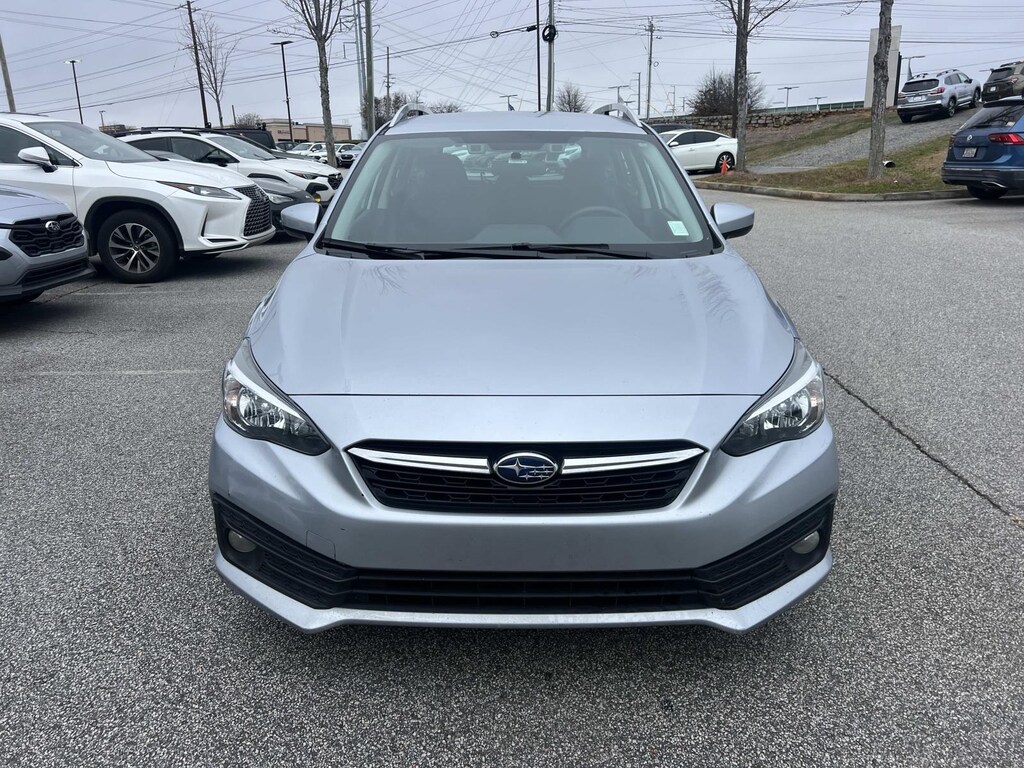 Certified. Ice Silver Metallic 2023 Subaru Impreza Premium AWD CVT Lineartronic 2.0L DOHC New Feature, Impreza Premium, 4D Hatchback, 2.0L DOHC, CVT Lineartronic, AWD, Ice Silver Metallic, Black Cloth, 4-Wheel Disc Brakes, 6 Speakers, ABS brakes, Air Conditioning, Alloy wheels, AM/FM radio: SiriusXM, Anti-whiplash front head restraints, Brake assist, Bumpers: body-color, CD player, Cloth Upholstery, Delay-off headlights, Driver door bin, Driver vanity mirror, Dual front impact airbags, Dual front side impact airbags, Electronic Stability Control, Exterior Parking Camera Rear, Four wheel independent suspension, Front anti-roll bar, Front Bucket Seats, Front Center Armrest, Front fog lights, Front reading lights, Fully automatic headlights, Heated door mirrors, Heated Front Bucket Seats, Heated front seats, Illuminated entry, Knee airbag, Low tire pressure warning, Occupant sensing airbag, Outside temperature display, Overhead airbag, Overhead console, Panic alarm, Passenger door bin, Passenger vanity mirror, Power door mirrors, Power steering, Power windows, Radio data system, Radio: Subaru STARLINK 6.5" Multimedia Plus System, Rear anti-roll bar, Rear window defroster, Rear window wiper, Remote keyless entry, Security system, Speed control, Speed-sensing steering, Split folding rear seat, Spoiler, Standard Model, STARLINK/Apple CarPlay/Android Auto, Steering wheel mounted audio controls, Tachometer, Telescoping steering wheel, Tilt steering wheel, Traction control, Trip computer, Variably intermittent wipers, Wheels: 16" x 6.5" Machine Finish J Aluminum-Alloy.