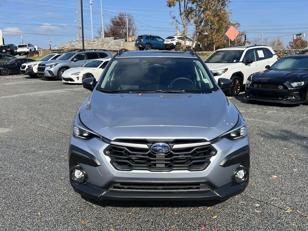 Certified. Silver 2024 Subaru Crosstrek Limited AWD Lineartronic CVT 2.5L 4-Cylinder DOHC 16V New Feature, **Back up Camera, **Bluetooth, **Keyless Entry, **Blind Spot Monitor, **Apple CarPlay, Crosstrek Limited, 4D Sport Utility, 2.5L 4-Cylinder DOHC 16V, Lineartronic CVT, AWD, Silver, Black Leather, 3.70 Axle Ratio, 4-Wheel Disc Brakes, 6 Speakers, ABS brakes, Air Conditioning, Alloy wheels, AM/FM radio: SiriusXM, Anti-whiplash front head restraints, Auto High-beam Headlights, Automatic temperature control, Brake assist, Bumpers: body-color, Driver door bin, Driver vanity mirror, Dual front impact airbags, Dual front side impact airbags, Electronic Stability Control, Emergency communication system: STARLINK Safety and Security (Subscription Required), Exterior Parking Camera Rear, Four wheel independent suspension, Front anti-roll bar, Front Bucket Seats, Front Center Armrest, Front dual zone A/C, Front fog lights, Front reading lights, Fully automatic headlights, Heated door mirrors, Heated Front Bucket Seats, Heated front seats, Illuminated entry, Knee airbag, Leather Shift Knob, Leather-Trimmed Upholstery, Low tire pressure warning, Occupant sensing airbag, Outside temperature display, Overhead airbag, Overhead console, Panic alarm, Passenger door bin, Passenger vanity mirror, Power door mirrors, Power driver seat, Power steering, Power windows, Radio data system, Radio: Subaru STARLINK 11.6" Multimedia Plus Sys, Rear anti-roll bar, Rear seat center armrest, Rear window defroster, Rear window wiper, Remote keyless entry, Security system, Speed control, Speed-sensing steering, Split folding rear seat, Spoiler, STARLINK/Apple CarPlay/Android Auto, Steering wheel mounted audio controls, Tachometer, Telescoping steering wheel, Tilt steering wheel, Traction control, Trip computer, Turn signal indicator mirrors, Variably intermittent wipers, Wheels: 18" x 7.0J Dark Gray Aluminum Alloy.