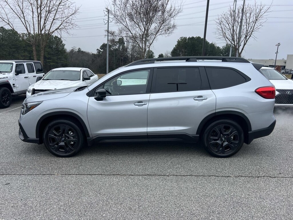 Certified. Ice Silver Metallic 2025 Subaru Ascent Onyx Edition Touring AWD Lineartronic CVT 2.4L 4-Cylinder DOHC 16V New Feature, **Back up Camera, **Bluetooth, **Keyless Entry, **Automatic Headlights, **Apple CarPlay, **Sunroof/Moonroof, Ascent Onyx Edition Touring, 4D Sport Utility, 2.4L 4-Cylinder DOHC 16V, Lineartronic CVT, AWD, Ice Silver Metallic, Slate Black w/Spill Resistant Coated Cloth Upholstery, 14 Speakers, 3rd row seats: bench, 4-Wheel Disc Brakes, ABS brakes, Air Conditioning, Alloy wheels, AM/FM radio: SiriusXM with 360L, Apple CarPlay & Android Auto, Auto High-beam Headlights, Auto-dimming Rear-View mirror, Automatic temperature control, Brake assist, Bumpers: body-color, Compass, Delay-off headlights, Driver door bin, Driver vanity mirror, Dual front impact airbags, Dual front side impact airbags, Electronic Stability Control, Emergency communication system: MySubaru Safety (3-year free trial), Exterior Parking Camera Rear, Four wheel independent suspension, Front anti-roll bar, Front Bucket Seats, Front Center Armrest, Front dual zone A/C, Front fog lights, Front reading lights, Fully automatic headlights, Garage door transmitter: HomeLink, harman/kardon® Speakers, Heated & Ventilated Front Bucket Seats, Heated door mirrors, Heated front seats, Heated rear seats, Heated steering wheel, HVAC memory, Illuminated entry, Knee airbag, Leather Shift Knob, Leather steering wheel, Low tire pressure warning, Memory seat, Navigation System, Occupant sensing airbag, Outside temperature display, Overhead airbag, Overhead console, Panic alarm, Passenger door bin, Passenger vanity mirror, Perforated Nappa Leather-Trimmed Upholstery, Power door mirrors, Power driver seat, Power Liftgate, Power moonroof, Power passenger seat, Power steering, Power windows, Radio data system, Radio: Subaru 11.6" Multimedia System w/Navigation, Rain sensing wipers, Rear air conditioning, Rear anti-roll bar, Rear reading lights, Rear window defroster, Rear window wiper, Reclining 3rd row seat, Remote keyless entry, Security system, Speed control, Speed-sensing steering, Split folding rear seat, Spoiler, Steering wheel mounted audio controls, Tachometer, Telescoping steering wheel, Tilt steering wheel, Traction control, Trip computer, Turn signal indicator mirrors, Variably intermittent wipers, Ventilated front seats, Wheels: 20" x 7.5 J Aluminum Alloy w/Black Finish.