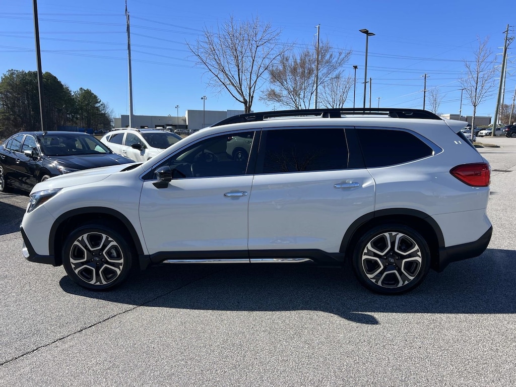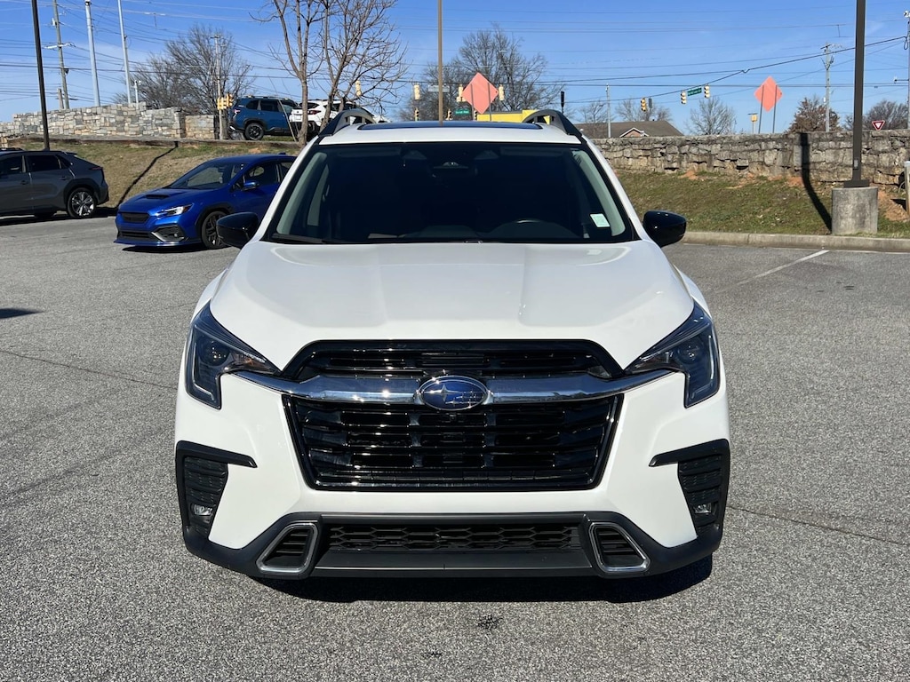 Certified. White 2025 Subaru Ascent Touring AWD Lineartronic CVT 2.4L 4-Cylinder DOHC 16V New Feature, **Back up Camera, **Bluetooth, **Keyless Entry, **Blind Spot Monitor, **Apple CarPlay, Ascent Touring, 4D Sport Utility, 2.4L 4-Cylinder DOHC 16V, Lineartronic CVT, AWD, White, Java Brown Leather, 14 Speakers, 3rd row seats: bench, 4-Wheel Disc Brakes, ABS brakes, Air Conditioning, All-Weather Floor Liners, Alloy wheels, AM/FM radio: SiriusXM with 360L, Apple CarPlay & Android Auto, Auto High-beam Headlights, Auto-Dimming Exterior Mirror w/Approach Light, Auto-dimming Rear-View mirror, Automatic temperature control, Brake assist, Bumpers: body-color, Cargo Tray, Compass, Delay-off headlights, Driver vanity mirror, Dual front impact airbags, Dual front side impact airbags, Electronic Stability Control, Emergency communication system: MySubaru Safety (3-year free trial), Exterior Parking Camera Rear, First Aid Kit, Four wheel independent suspension, Front anti-roll bar, Front Bucket Seats, Front Center Armrest, Front dual zone A/C, Front fog lights, Front reading lights, Fully automatic headlights, Garage door transmitter: HomeLink, harman/kardon® Speakers, Heated & Ventilated Front Bucket Seats, Heated door mirrors, Heated front seats, Heated rear seats, Heated steering wheel, HVAC memory, Illuminated entry, Knee airbag, Leather Shift Knob, Leather steering wheel, LED Upgrade, Low tire pressure warning, Memory seat, Occupant sensing airbag, Outside temperature display, Overhead airbag, Overhead console, Panic alarm, Passenger door bin, Passenger vanity mirror, Perforated Nappa Leather-Trimmed Upholstery, Popular Package #1, Power door mirrors, Power driver seat, Power Liftgate, Power moonroof, Power passenger seat, Power steering, Power windows, Radio data system, Radio: Subaru 11.6" Multimedia System w/Navigation, Rain sensing wipers, Rear air conditioning, Rear anti-roll bar, Rear Bumper Cover, Rear reading lights, Rear window defroster, Rear window wiper, Reclining 3rd row seat, Remote keyless entry, Security system, Speed control, Speed-sensing steering, Splash Guards, Split folding rear seat, Spoiler, Steering wheel mounted audio controls, Tachometer, Telescoping steering wheel, Tilt steering wheel, Traction control, Trailer Hitch, Trip computer, Turn signal indicator mirrors, Variably intermittent wipers, Ventilated front seats, Wheels: 20" x 7.5 J Dk Gray Alloy w/Machine Finish.
