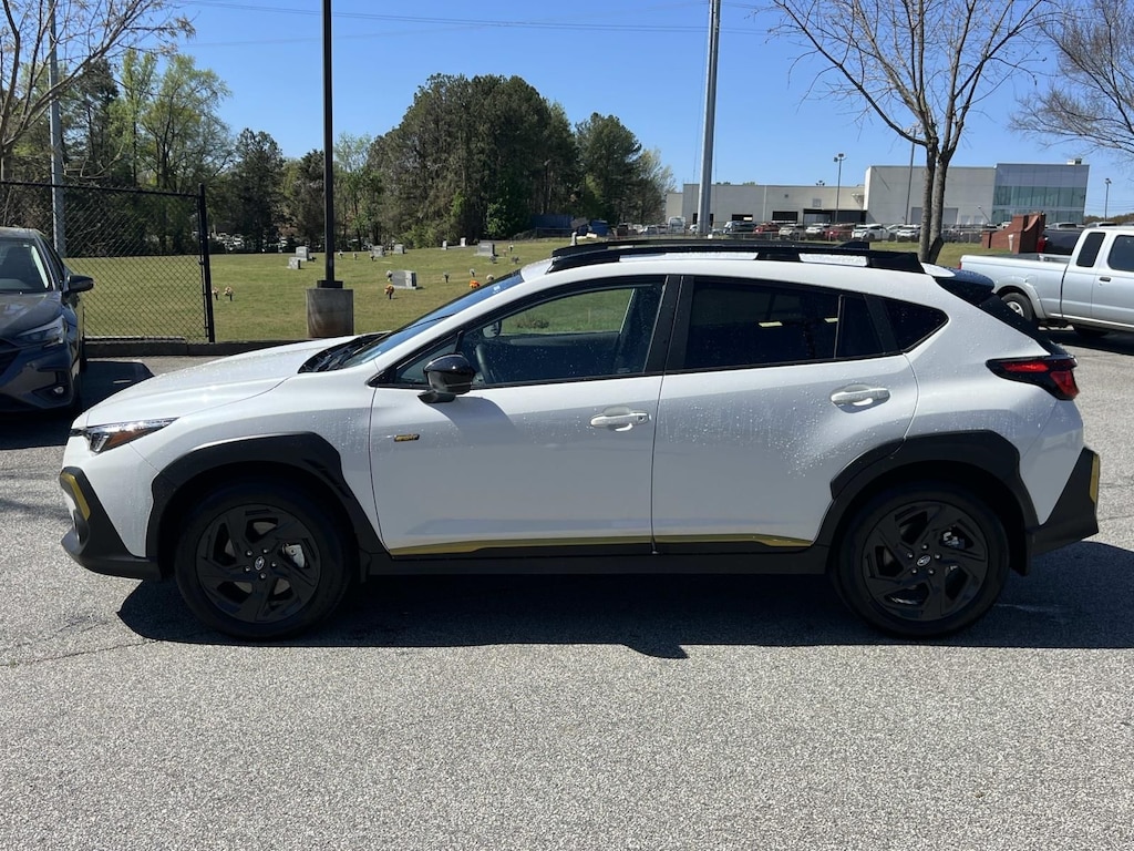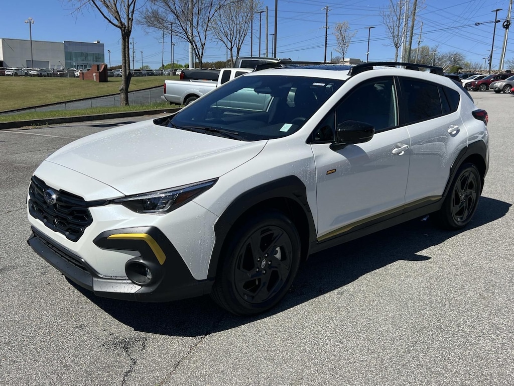 Crystal White Pearl 2025 Subaru Crosstrek Sport AWD Lineartronic CVT 2.5L 4-Cylinder DOHC 16V New Feature, **Back up Camera, **Bluetooth, **Keyless Entry, **Automatic Headlights, **Hands Free Phone, **Heated Seats, Crosstrek Sport, 4D Sport Utility, 2.5L 4-Cylinder DOHC 16V, Lineartronic CVT, AWD, Crystal White Pearl, Gray w/Sport Cloth Upholstery, 10-Way Power Driver's Seat, 4-Wheel Disc Brakes, 6 Speakers, ABS brakes, Air Conditioning, All-Weather Floor Liners, Alloy wheels, AM/FM radio: SiriusXM, Anti-whiplash front head restraints, Auto High-beam Headlights, Auto-Dimming Exterior Mirror w/Approach Light, Auto-Dimming Mirror w/Compass & HomeLink, Automatic temperature control, Blind Spot Detection (BSD), Brake assist, BSD/RCTA & Power Driver Seat & Power Moonroof, Bumpers: body-color, Driver door bin, Driver vanity mirror, Dual front impact airbags, Dual front side impact airbags, Electronic Stability Control, Emergency communication system, Exterior Parking Camera Rear, Four wheel independent suspension, Front anti-roll bar, Front Bucket Seats, Front Center Armrest, Front dual zone A/C, Front fog lights, Front reading lights, Fully automatic headlights, Heated door mirrors, Heated Front Bucket Seats, Heated front seats, Illuminated entry, Knee airbag, Leather Shift Knob, Leather steering wheel, Low tire pressure warning, Occupant sensing airbag, Outside temperature display, Overhead airbag, Overhead console, Panic alarm, Passenger door bin, Passenger vanity mirror, Popular Package #4A, Power door mirrors, Power Moonroof, Power steering, Power windows, Radio data system, Radio: Subaru 11.6" Multimedia Plus System, Rear anti-roll bar, Rear Bumper Cover, Rear Cross-Traffic Alert (RCTA) System, Rear seat center armrest, Rear window defroster, Rear window wiper, Remote keyless entry, Security system, Speed control, Speed-sensing steering, Splash Guards, Split folding rear seat, Spoiler, Sport Cloth Upholstery, Steering wheel mounted audio controls, Tachometer, Telescoping steering wheel, Tilt steering wheel, Traction control, Trip computer, Turn signal indicator mirrors, Variably intermittent wipers, Wheels: 18" x 7.0" J Dark Gray Aluminum-Alloy.