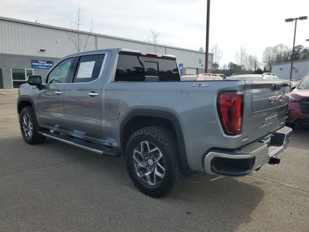 Powered by the reliable EcoTec3 5.3L V8 engine and paired with a smooth-shifting 10-Speed Automatic transmission, this Sierra 1500 SLT delivers impressive performance and efficiency, with an estimated 15 MPG in the city and 18 MPG on the highway. The 4WD system provides exceptional traction and control, making it the perfect companion for your adventures on and off the road.