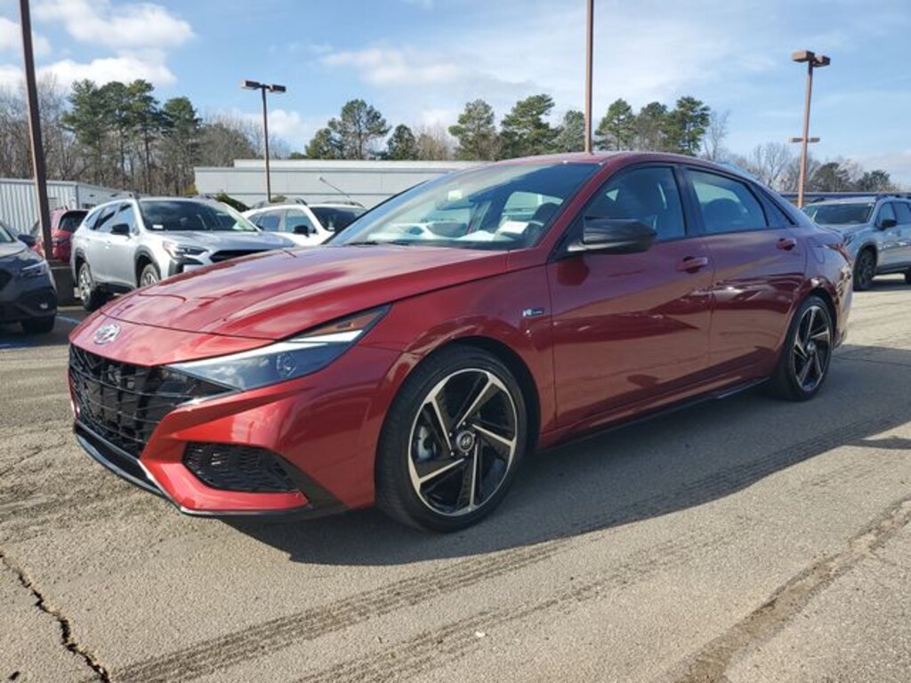 2023 Hyundai Elantra N Line CARFAX One-Owner. ** Bluetooth, ** Backup Camera, ** Apple Car Play / Android Auto, 18" x 7.5J Alloy Wheels, 4-Wheel Disc Brakes, 6 Speakers, ABS brakes, Air Conditioning, Alloy wheels, AM/FM radio: SiriusXM, Apple CarPlay & Android Auto, Auto High-beam Headlights, Automatic temperature control, Brake assist, Bumpers: body-color, Cargo Block, Cargo Net, Cargo Package, Carpeted Floor Mats, Combination Cloth & Leather Seating Surfaces, Delay-off headlights, Driver door bin, Driver vanity mirror, Dual front impact airbags, Dual front side impact airbags, Electronic Stability Control, Emergency communication system: Blue Link Connected Car Service (3-year complimentary subscription), Exterior Parking Camera Rear, First Aid Kit, Four wheel independent suspension, Front Bucket Seats, Front Center Armrest, Front dual zone A/C, Front reading lights, Fully automatic headlights, Heated door mirrors, Heated front seats, Heated Front Sport Bucket Seats, Illuminated entry, Leather Shift Knob, Leather steering wheel, Low tire pressure warning, Navigation System, Occupant sensing airbag, Option Group 01, Outside temperature display, Overhead airbag, Overhead console, Panic alarm, Passenger door bin, Passenger vanity mirror, Power door mirrors, Power driver seat, Power moonroof, Power steering, Power windows, Radio: AM/FM/HD/SiriusXM Display Audio, Rear seat center armrest, Rear window defroster, Remote keyless entry, Reversible Cargo Tray, Security system, Speed control, Speed-sensing steering, Split folding rear seat, Spoiler, Sport steering wheel, Steering wheel mounted audio controls, Tachometer, Telescoping steering wheel, Tilt steering wheel, Traction control, Trip computer, Variably intermittent wipers.