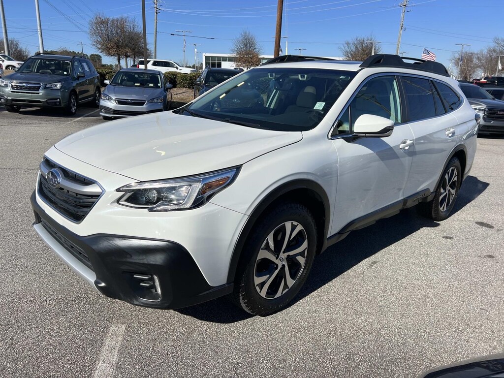 White 2022 Subaru Outback Limited AWD CVT Lineartronic 2.5L 4-Cylinder DOHC 16V New Feature, **Back up Camera, **Bluetooth, **Keyless Entry, **Blind Spot Monitor, Outback Limited, 4D Sport Utility, 2.5L 4-Cylinder DOHC 16V, CVT Lineartronic, AWD, White, Warm Ivory Leather, 12 Speakers, 3.90 Axle Ratio, 4-Wheel Disc Brakes, ABS brakes, Air Conditioning, Alloy wheels, AM/FM radio: SiriusXM, Auto High-beam Headlights, Auto-dimming Rear-View mirror, Automatic temperature control, Brake assist, Bumpers: body-color, Compass, Driver door bin, Driver vanity mirror, DriverFocus (Driver Monitoring System), Dual front impact airbags, Dual front side impact airbags, Electronic Stability Control, Emergency communication system: STARLINK Safety and Security (Subscription Required), Exterior Parking Camera Rear, Four wheel independent suspension, Front anti-roll bar, Front Bucket Seats, Front Center Armrest w/Storage, Front dual zone A/C, Front fog lights, Front reading lights, Fully automatic headlights, Garage door transmitter: HomeLink, harman/kardon® Speakers, Heated door mirrors, Heated Front Bucket Seats, Heated front seats, Heated rear seats, Heated Steering Wheel, Illuminated entry, Knee airbag, Leather steering wheel, Low tire pressure warning, Memory seat, Occupant sensing airbag, Outside temperature display, Overhead airbag, Overhead console, Panic alarm, Passenger door bin, Passenger vanity mirror, Perforated Leather-Trimmed Upholstery, Power door mirrors, Power driver seat, Power Liftgate, Power Moonroof, Power Moonroof & HSW & Navigation System, Power passenger seat, Power steering, Power windows, Radio: Subaru STARLINK 11.6" Multimedia Nav System, Radio: Subaru STARLINK 11.6" Multimedia Plus Sys, Rear anti-roll bar, Rear seat center armrest, Rear window defroster, Rear window wiper, Remote keyless entry, Roof rack, Security system, Speed control, Speed-sensing steering, Spoiler, STARLINK/Apple CarPlay/Android Auto, Steering wheel mounted audio controls, Steering Wheel Paddle Shift Control Switches, Tachometer, Telescoping steering wheel, Tilt steering wheel, Traction control, Trip computer, Turn signal indicator mirrors, Variably intermittent wipers, Wheels: 18" x 7J Black Aluminum Alloy.