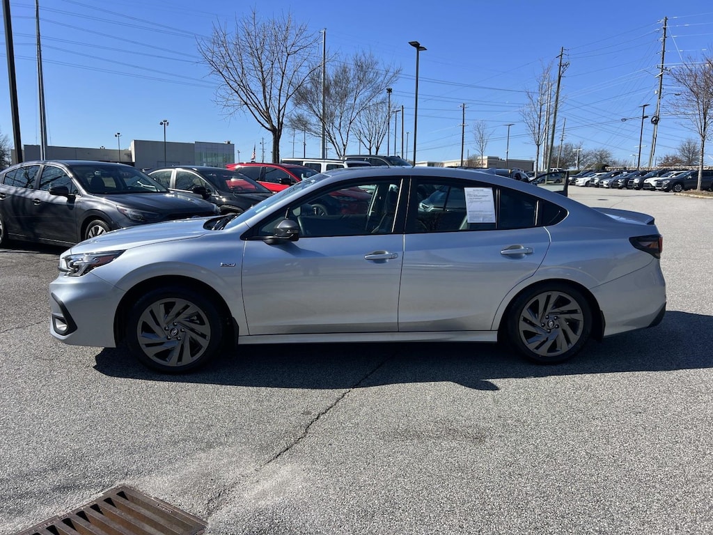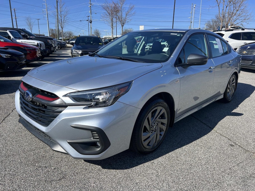 Certified. Ice Silver Metallic 2025 Subaru Legacy Sport AWD Lineartronic CVT 2.4L 4-Cylinder DOHC 16V New Feature, **Back up Camera, Legacy Sport, 4D Sedan, 2.4L 4-Cylinder DOHC 16V, Lineartronic CVT, AWD, Ice Silver Metallic, Gray Cloth, 12 Speakers, 4-Wheel Disc Brakes, ABS brakes, Air Conditioning, All-Weather Floor Liners, Alloy wheels, AM/FM radio: SiriusXM with 360L, Anti-whiplash front head restraints, Apple CarPlay & Android Auto, Auto High-beam Headlights, Auto-dimming Rear-View mirror, Automatic temperature control, Brake assist, Bumpers: body-color, Cargo Tray, Cloth Upholstery w/Red Stitching, Compass, Driver door bin, Driver vanity mirror, Dual front impact airbags, Dual front side impact airbags, Electronic Stability Control, Emergency communication system: MySubaru Safety Plus (3-year free trial included), Exterior Auto-Dimming Mirror w/Approach Light, Exterior Parking Camera Rear, Four wheel independent suspension, Front anti-roll bar, Front Bucket Seats, Front Center Armrest w/Storage, Front dual zone A/C, Front fog lights, Front reading lights, Fully automatic headlights, Garage door transmitter: HomeLink, harman/kardon® Speakers, Heated door mirrors, Heated Front Bucket Seats, Heated front seats, Heated steering wheel, Illuminated entry, Knee airbag, Leather steering wheel, Low tire pressure warning, Occupant sensing airbag, Outside temperature display, Overhead airbag, Overhead console, Panic alarm, Passenger door bin, Passenger vanity mirror, Popular Package #3, Power door mirrors, Power driver seat, Power moonroof, Power steering, Power windows, Radio: Subaru 11.6" Multimedia Plus System, Rear anti-roll bar, Rear Bumper Applique, Rear seat center armrest, Rear Seatback Protector, Rear window defroster, Remote keyless entry, Security system, Speed control, Speed-sensing steering, Splash Guards, Split folding rear seat, Spoiler, Standard Model, Steering wheel mounted audio controls, Tachometer, Telescoping steering wheel, Tilt steering wheel, Traction control, Trip computer, Turn signal indicator mirrors, Variably intermittent wipers, Wheels: 18" x 7.5J Gray Finish Aluminum-Alloy.